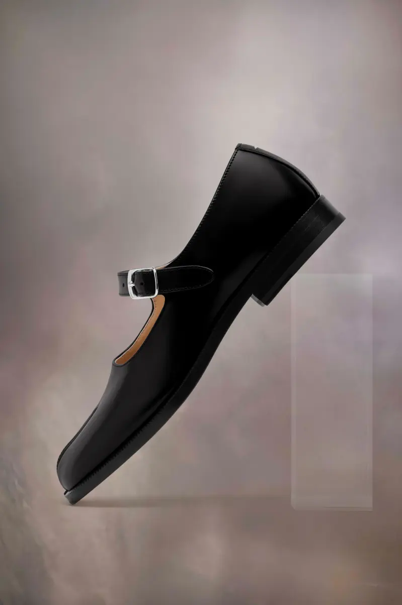 Tabi Mary-Janes din piele periată, cu o curea reglabilă pe picior și talpă plată. Acestea prezintă degetul Tabi, inspirat de șosetul tradițional japonez din secolul al XV-lea, care poartă același nume – lansat pentru colecția de debut a Maison în 1989. Acesta surprinde spiritul avangardist și insubordonat al Maison și există ca un clasic de moștenire, explorat continuu prin fiecare colecție.